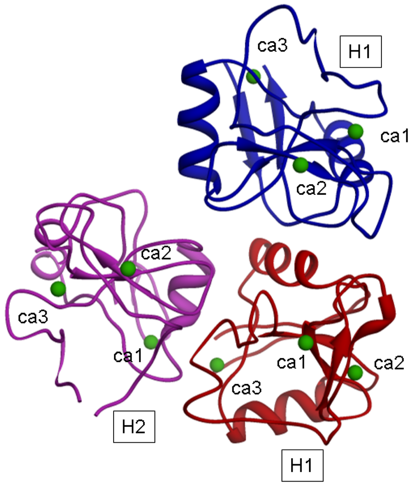 Thanks to the high similarity between the H1 and H2 CRD sequences, the three binding sites (Table 2) identified in the H1 CRD [10] are reasonably conserved in the H2 CRD.