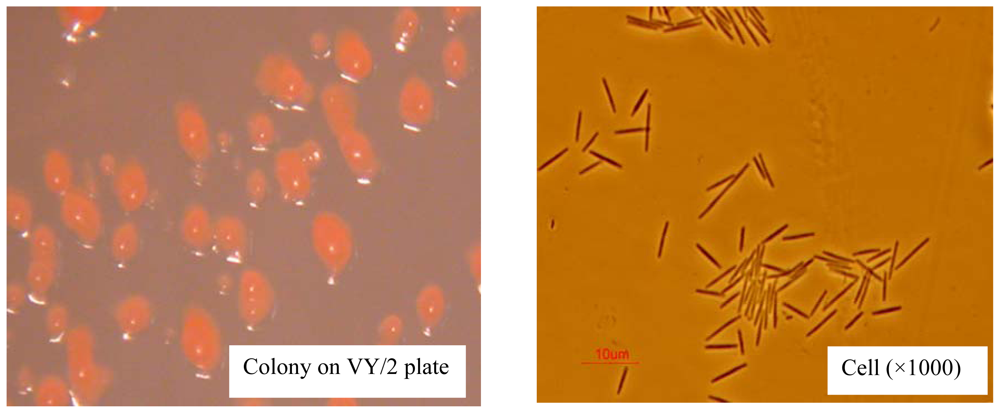 Initial pH value in VY/2 medium was adjusted to 5.0, 5.5, 6.0 by using citrate acid buffer, and to 6.5, 7.0, 7.5, 8.0, 9.0 by sodium phosphate buffer.