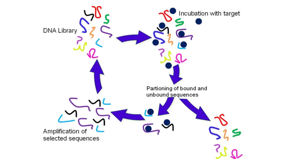 Schematic overview of the Systematic Evolution of Ligands by EXponential enrichment (SELEX) procedure.