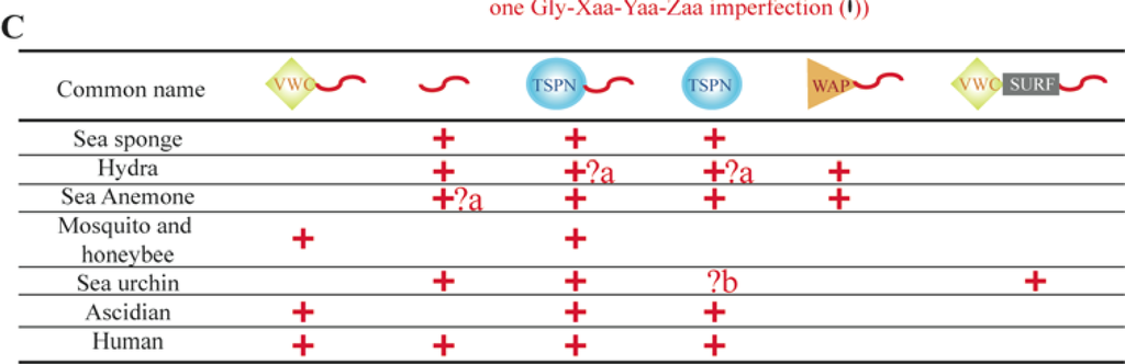 - Exposito, JY; Cluzel, C; Garrone, R; Lethias, C. Evolution of collagens. Anat. Rec 2002, 268, 302–316. [Google Scholar]