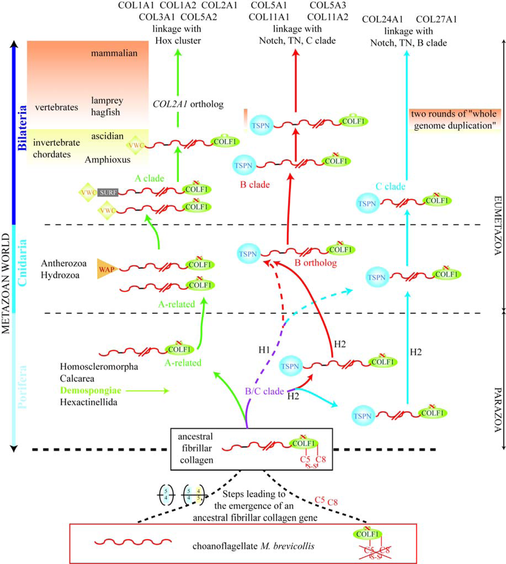 7. Suggested Evolutionary Model for the Fibrillar Collagen Family