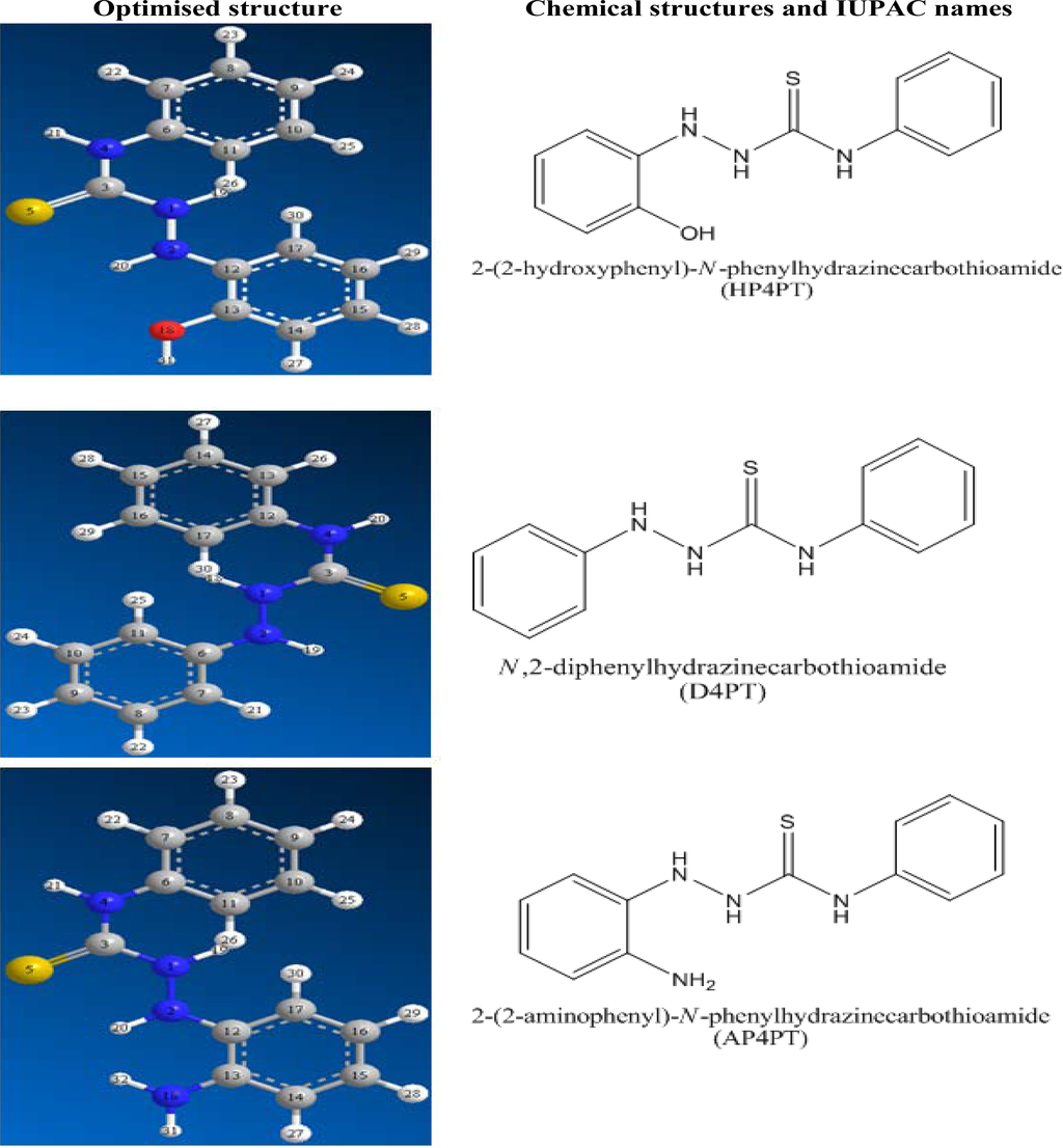 Figure 1 shows the chemical and optimized structures of the inhibitors (AP4PT, HP4PT and D4PT).