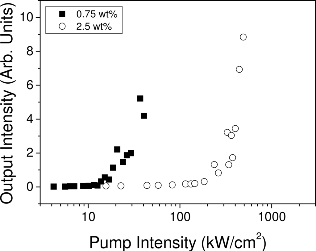 - Díaz-García, MA; Fernández De Avila, S; Kuzyk, MG. Dye-doped polymers for blue organic diode lasers. Appl. Phys. Lett 2002, 80, 4486–4488. [Google Scholar]
