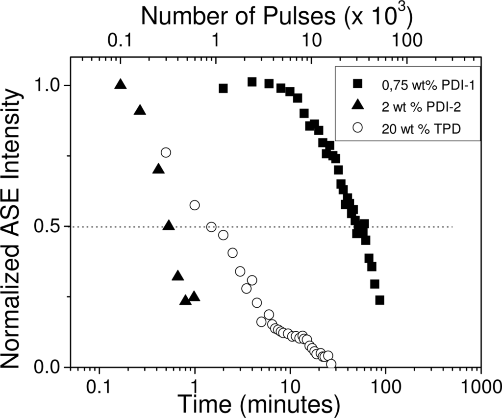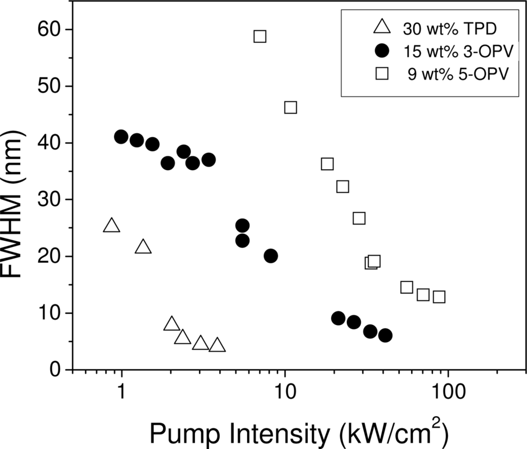 - Takahashi, H; Naito, H. Amplified spontaneous emission from fluorine-based copolymer waveguides. Thin Solid Films 2005, 447, 53–56. [Google Scholar]