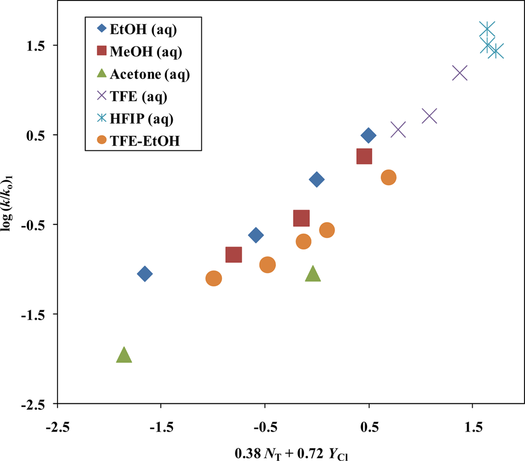 - Kevill, DN; D’Souza, MJ. Sixty Years of the Grunwald-Winstein Equation: Development and Recent Applications. J Chem Res 2008, 61–66. [Google Scholar]