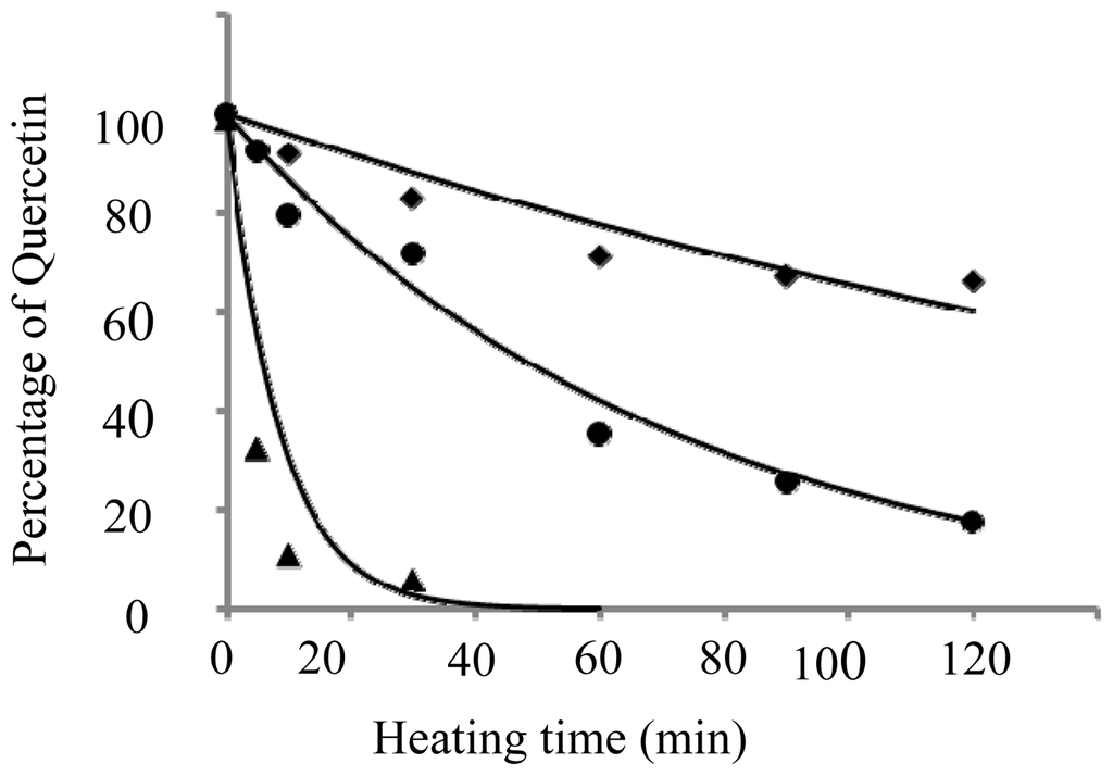 - Chien, JT; Hsu, DJ; Chen, BH. Kinetic model for studying the effect of quercetin on cholesterol oxidation during heating. J. Agric. Food Chem 2006, 54, 1486–1492. [Google Scholar]