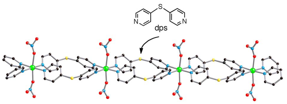 For years we have focused on coordination polymers that change their structures responding to external stimuli such as temperature variation [] and present organic solvents [,]. As a unique example, we reported a new Ni coordination polymer with 4,4′-dipyridylsulfide (dps) in our previous communication []. This compound created unique channels, which changed the channel windows responding to temperature variation. The channels below the critical temperature mechanically captured guest EtOH molecules, and then released them above the temperature. This coordination polymer was comprised of one-dimensional frameworks formulated as [Ni(dps)2(NO3)2], which is designated as “(Ni-dps2) chain” (Scheme 1). This paper describes the unique rearrangement properties of the (Ni-dps2) chains responding to external stimuli such as temperature variations, and the guest release and re-inclusion.