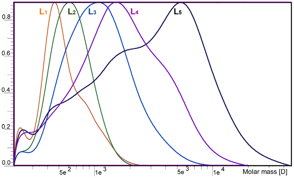 - Pellinen, J; Salkinoja-Salonen, M. High-performance size-exclusion chromatography of lignin and its derivatives. J. Chromatogr 1985, 328, 299–308. [Google Scholar]