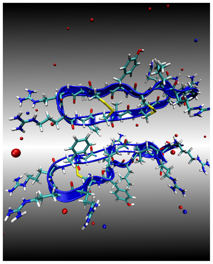 - Khandelia, H; Kaznessis, YN. Structure of the antimicrobial beta-hairpin peptide protegrin-1 in a DLPC lipid bilayer investigated by molecular dynamics simulation. BBA Biomembr 2007, 1768, 509–520. [Google Scholar]