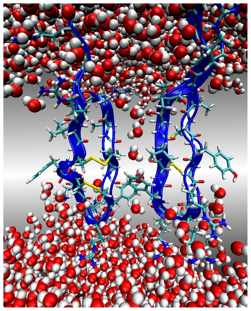 - Langham, AA; Sayyed-Ahmad, A; Kaznessis, YN. On the nature of antimicrobial activity: A model for protegrin-1 pores. J. Am. Chem. Soc 2008, 130, 4338–4346. [Google Scholar]