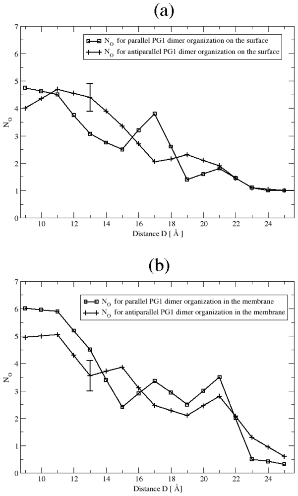 2.1. Microscopic Models for PG1 Dimers in the Water Phase, on the Surface of a POPG:POPE Membrane and inside a POPG:POPE Membrane