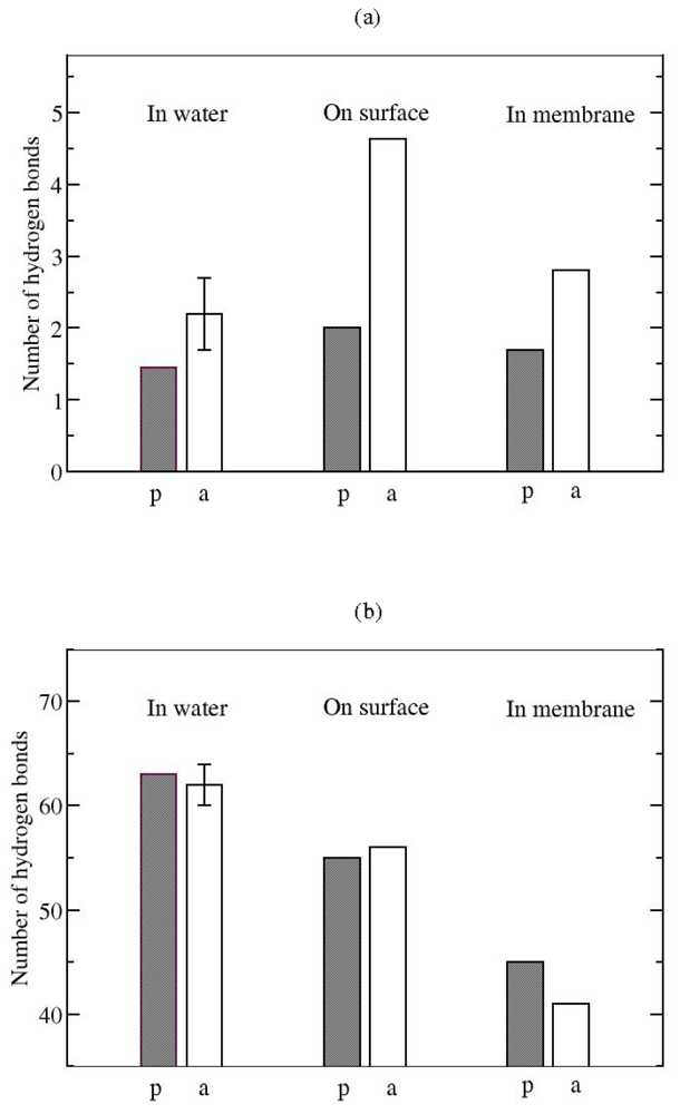 - Vivcharuk, V; Tomberli, B; Tolokh, IS; Gray, CG. Prediction of binding free energy for adsorption of antimicrobial peptide lactoferricin B on a POPC membrane. Phys. Rev. E 2008, 77, 031913. [Google Scholar]