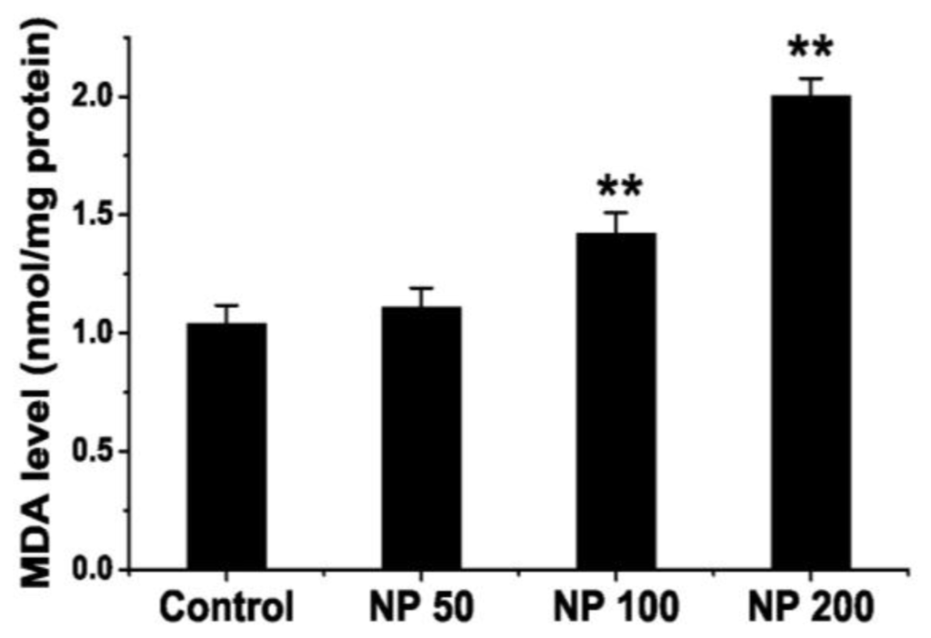 2.3. Effects of NP on Lipid Peroxidation Level of Mouse Brain