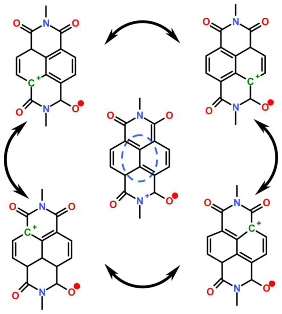 - Aveline, BM; Matsugo, S; Redmond, RW. Photochemical Mechanisms Responsible for the Versatile Application of Naphthalimides and Naphthaldiimides in Biological Systems. J. Am. Chem. Soc 1997, 119, 11785–11795. [Google Scholar]