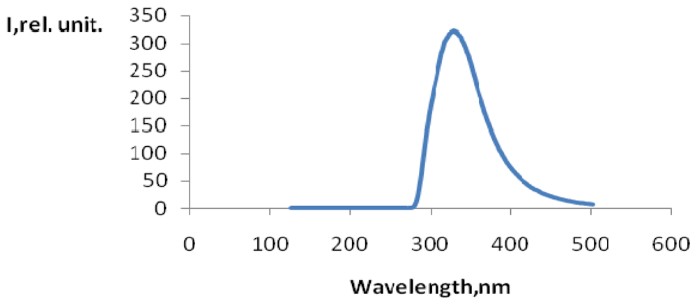 For the quantitative detection of OH• radicals in human serum blood in patients with pathological schizophrenia the detected fluorescence spectrum was identical to that of TA-OH with λemissionmax = 327 nm (Figure 3) for excitation wavelength of 315 nm at a pH of 6. 86. It was concluded that TA-OH was the only fluorescing species under these conditions. The received signal increased with addition of serum blood (Figure 3).