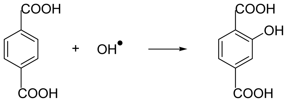 Hydroxylation of terephthalic acid due to radical oxidation.
