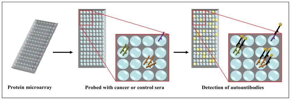 - Kijanka, G; Murphy, D. Protein arrays as tools for serum autoantibody marker discovery in cancer. J Proteomics 2009, 72, 936–944. [Google Scholar]