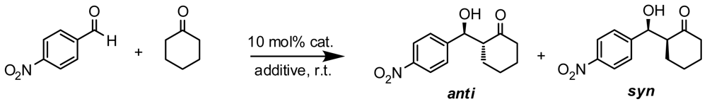 Asymmetric aldol reaction of 4-nitrobenzaldehyde and cyclohexanone.