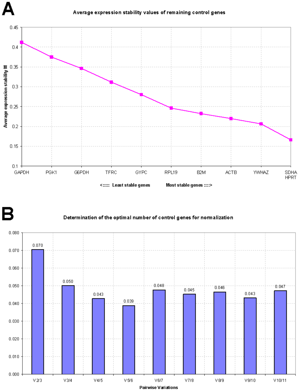 To select the optimal set of reference genes, expression values of the candidate genes were submitted to analysis by the geNorm and NormFinder applications.