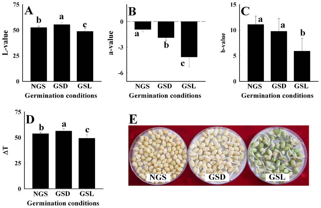 2.2. Changes in Soybean Color by Germination Under Dark and Light Conditions