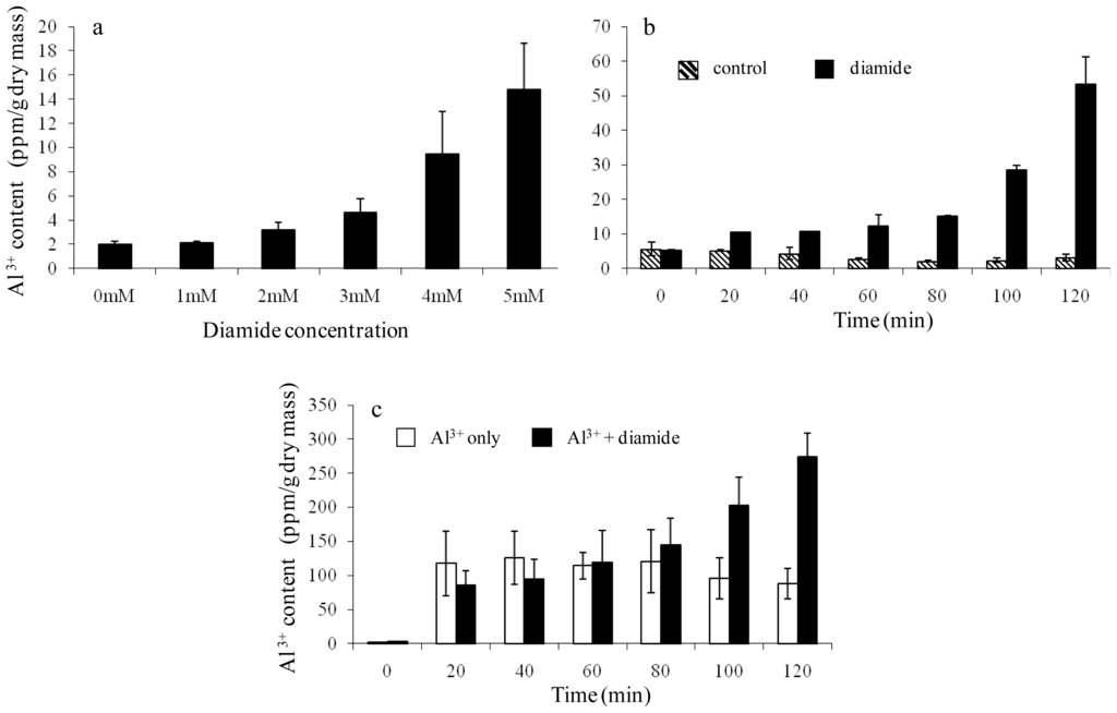 3.5. Characterization of Aluminium Accumulation over a Range of Diamide Concentrations and over a Time Course