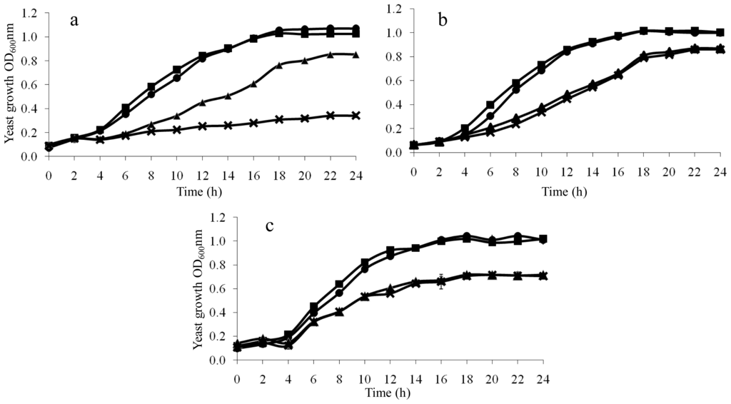 - Wu, M.J.; O’Doherty, P.J.; Fernandez, H.R.; Lyons, V.; Rogers, P.J.; Dawes, I.W.; Higgins, V.J. An antioxidant screening assay based on oxidant-induced growth arrest in Saccharomyces cerevisiae. FEMS Yeast Res 2011, 11, 379–387. [Google Scholar]