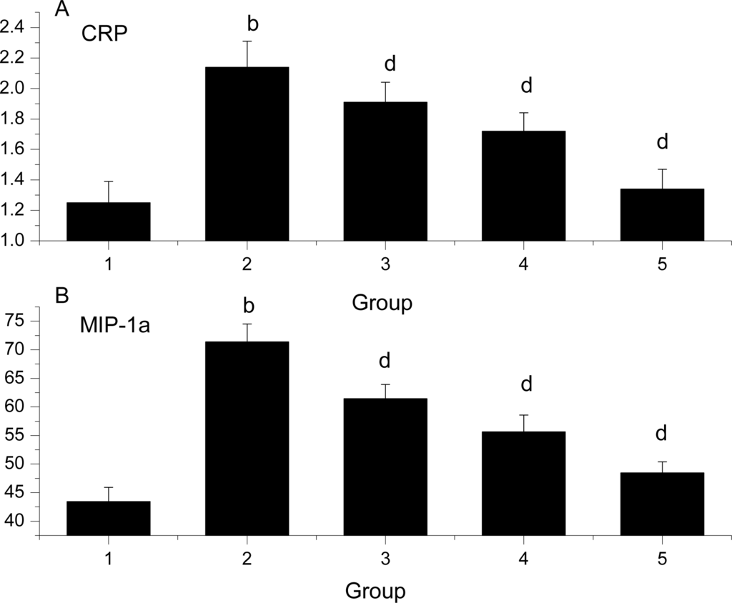Levels of serum MIP-1α and CRP were measured with rat MIP-1 alpha ELISA/EIA Kits and rat C-reactive protein (CRP) ELISA kit.