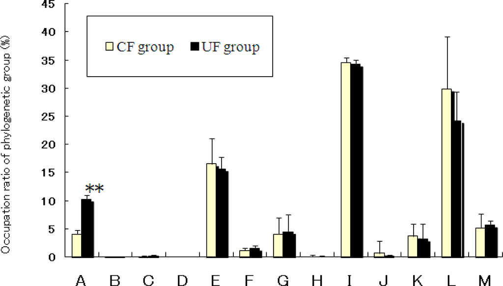 - Nagashima, K; Mochizuki, J; Hisada, T; Suzuki, S; Shimomura, K. Phylogenetic analysis of 16S ribosomal RNA gene sequences from human fecal microbiota and improved utility of terminal restriction fragment length polymorphism profiling. Biosci. Microflora 2006, 25, 99–107. [Google Scholar]