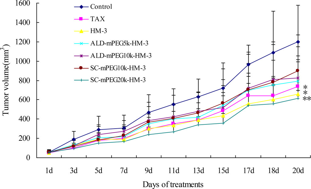 3.3. Anti-Tumor Activity of the Different PEG-Modified HM-3