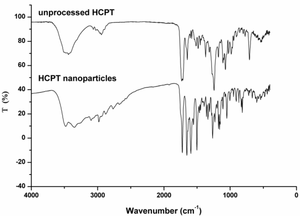 FTIR spectra of unprocessed HCPTand HCPT nanoparticles.