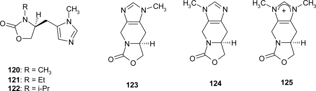 - Sànchez, MS; Alberdi, LMT; Rioseras, MJ; Ferriera, MR; Gonzales, FB. The Pictet-Spengler reaction on l-Histidine. Preparation of Conformationally restricted (+)-Pilocarpine analogs. Bull. Chem. Soc. Jpn 1998, 66, 191–195. [Google Scholar]