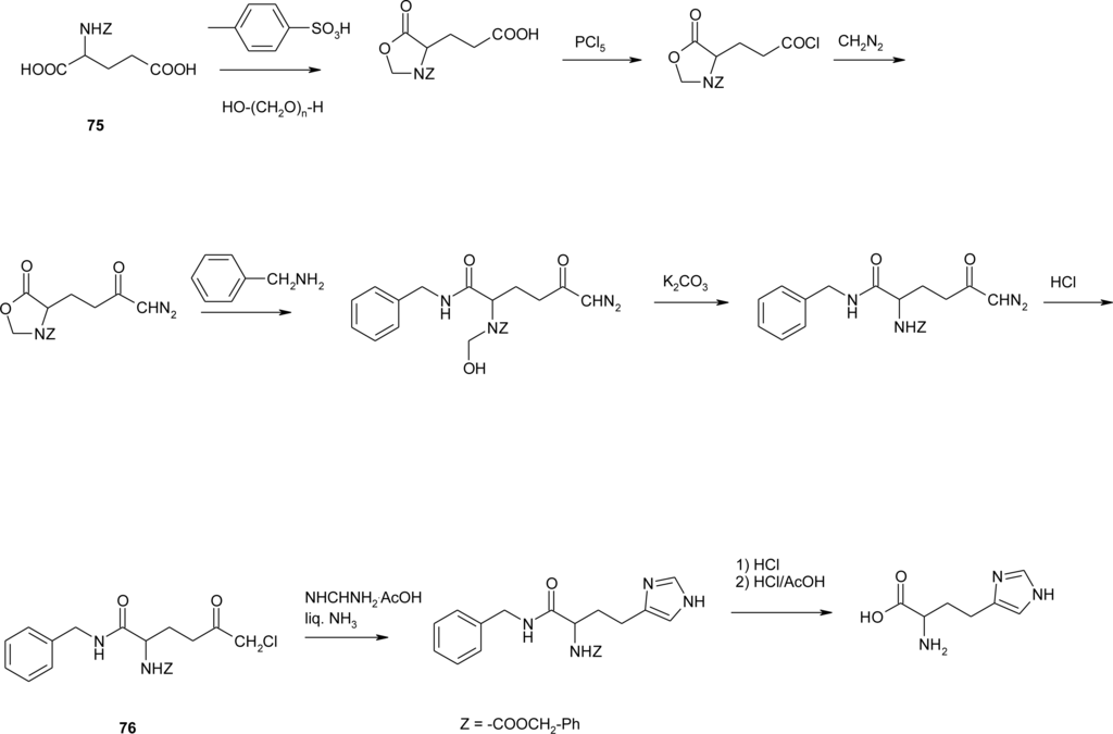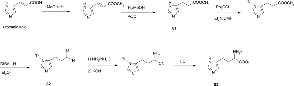 - Altman, J; Wilchek, M; Lipp, R; Schunack, W. An improved synthesis of l-homo-histidine. Synth. Commun 1989, 19, 2069–2076. [Google Scholar]