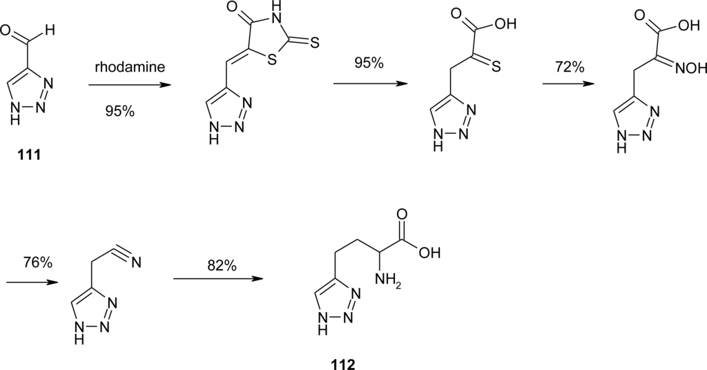 - Pirrung, MC; Pei, TJ. Synthesis of (+)-Homo-histidine. J. Org. Chem 2000, 65, 2229–2230. [Google Scholar]