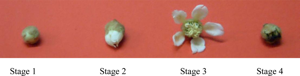 The records of many flowers used as Traditional Chinese Medicine (TCM) can be found in ancient books such as “Ben Cao Gang Mu” and “Yang Sheng Lu” et al. Research on bioactive components of flowers, healthy food and beverage exploitations of the flowers as raw materials, has received much attention in recent years. However, examination of the antioxidant capacity of flowers was mainly focused on annuals flowers [7–10], while few studies were conducted on the flowers of woody fruit trees [11,12].