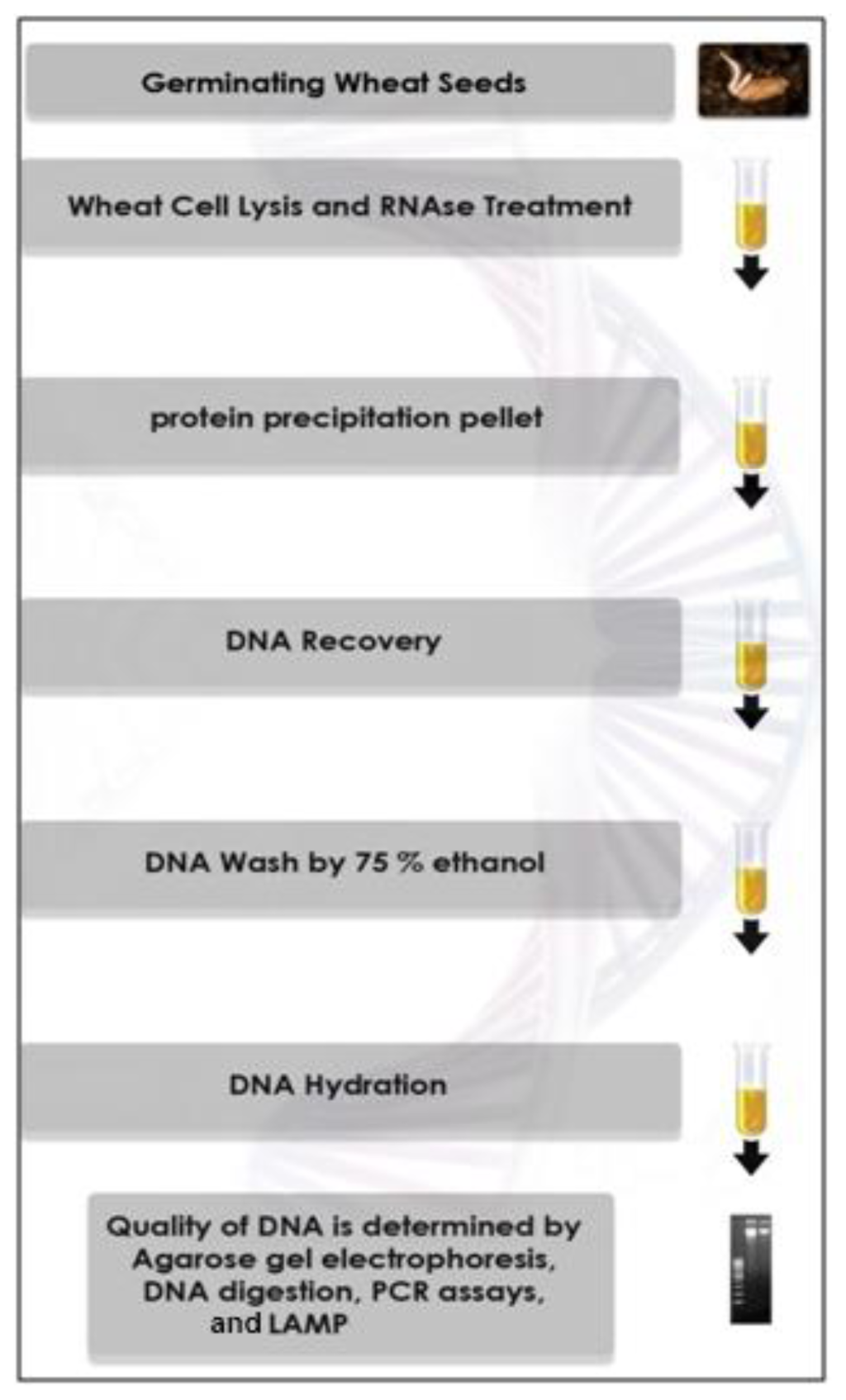 Flow diagram of the current method for DNA isolation from germinated wheat seeds.