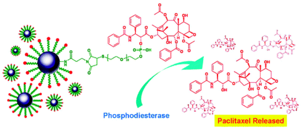 PTX release from the PTX-Fe-NPs through hydrolysis of the phosphodiester chemical bonds (reproduced with permission from []© 2009, American Chemical Society).