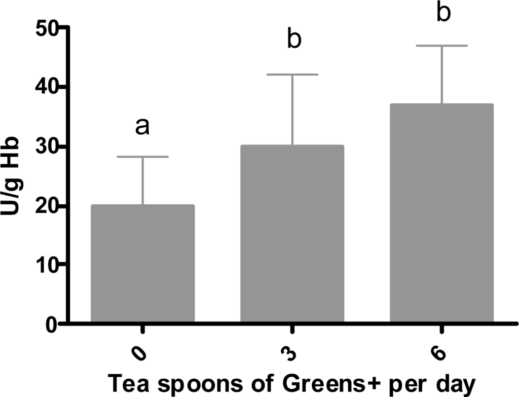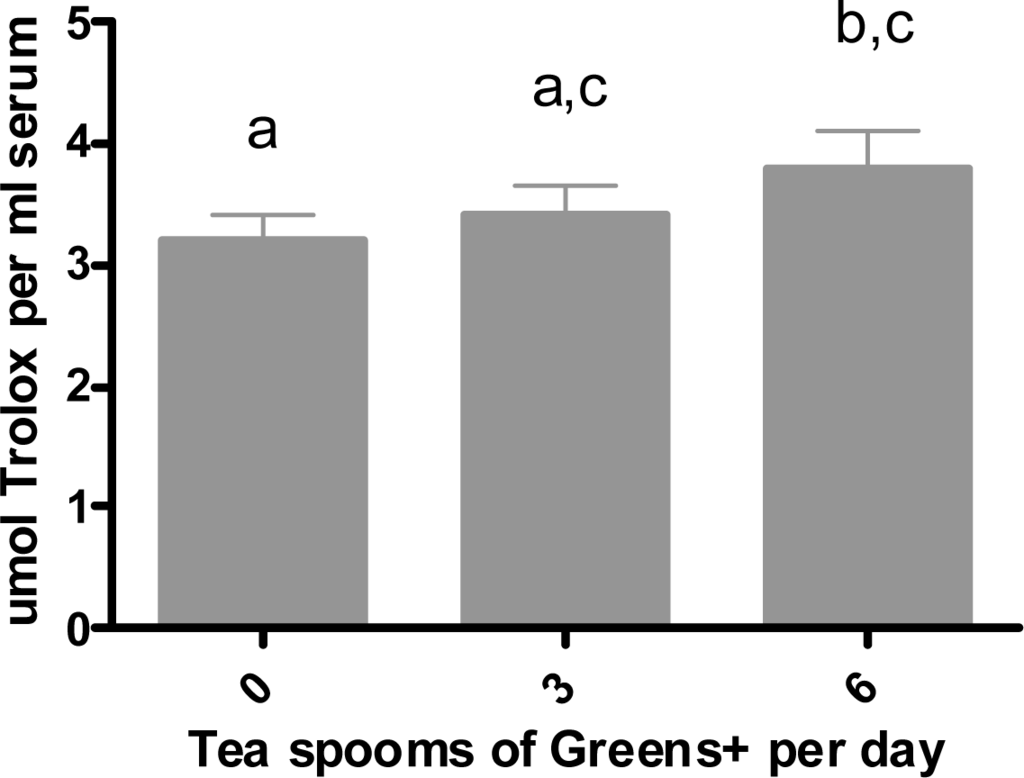 In Vitro and in Vivo Antioxidant Properties of the Plant-Based Supplement Greens+