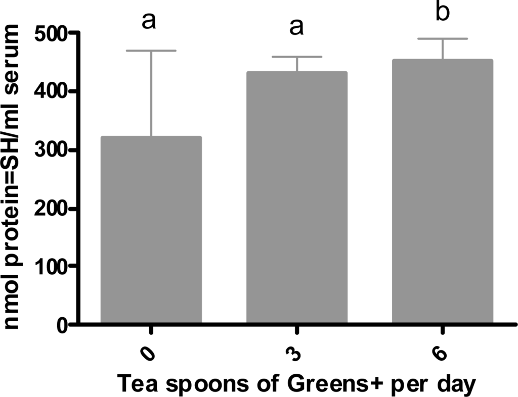 3.2.4. Effect of Ingesting Greens+ on Protein Oxidation