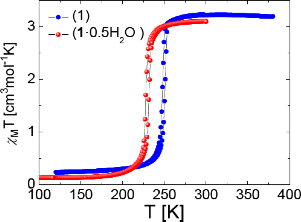 3.2.2. [Fe(βAlatrz)3](CF3SO3)2·0.5H2O (1·0.5H2O)