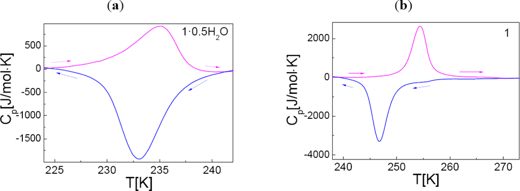 - Rotaru, A; Dîrtu, MM; Enachescu, C; Tanasa, R; Linares, J; Stancu, A; Garcia, Y. Calorimetric measurements of diluted spin crossover complexes [FexM1−x(btr)2(NCS)2]·H2O with MII = Zn and Ni. Polyhedron 2009, 28, 2531–2536. [Google Scholar]