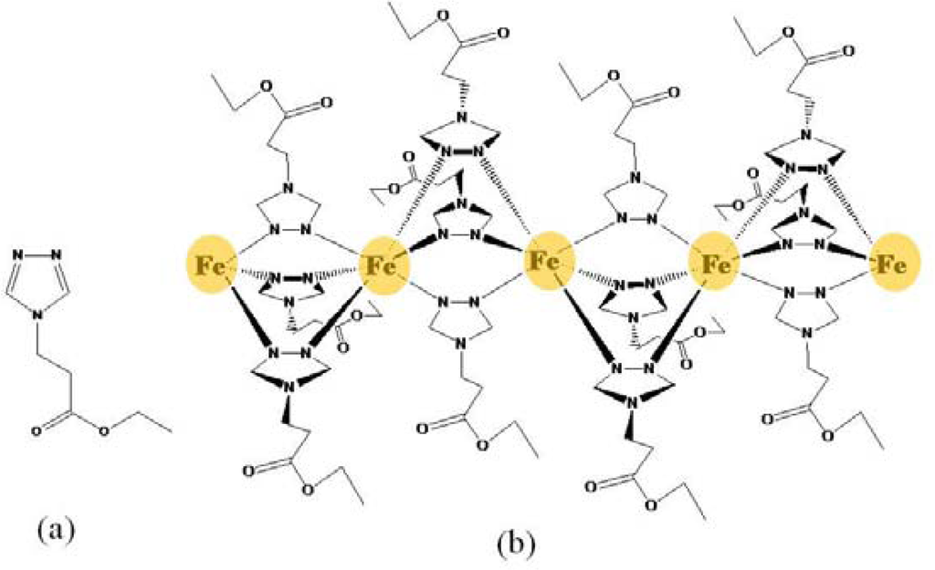 - Garcia, Y; van Koningsbruggen, PJ; Lapouyade, R; Rabardel, L; Kahn, O; Wieczorek, M; Bronisz, R; Ciunik, Z; Rudolf, MF. Synthesis and spin-crossover characteristics of polynuclear 4-(2′-hydroxyethyl)-1,2,4-triazole Fe(II) molecular materials. C R Acad Sci 1998, IIc, 523–532. [Google Scholar]