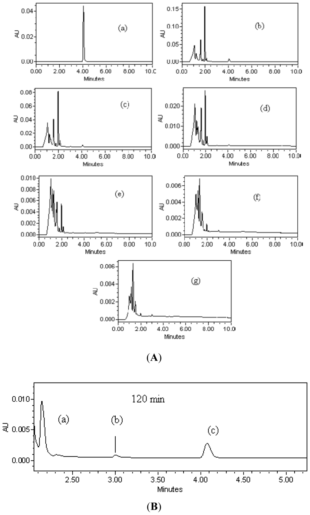 - Mai, F.; Chen, C.; Chen, J.; Liu, S. Photodegradation of methyl green using visible irradiation in ZnO suspensions: Determination of the reaction pathway and identification of intermediates by a high-performance liquid chromatography-photodiode array-electrospray ionization-mass spectrometry method. J. Chromatogr. A 2008, 1189, 355–365. [Google Scholar]