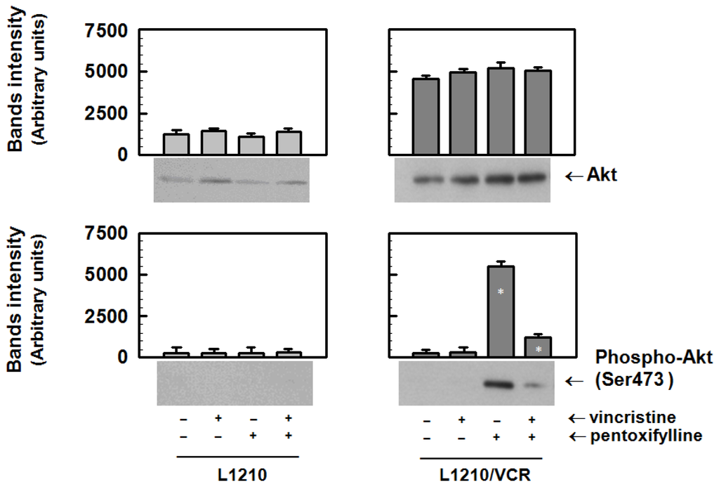 2.1.3. Pentoxifylline Influences the Activation of Akt Kinase in Resistant L1210/VCR Cells