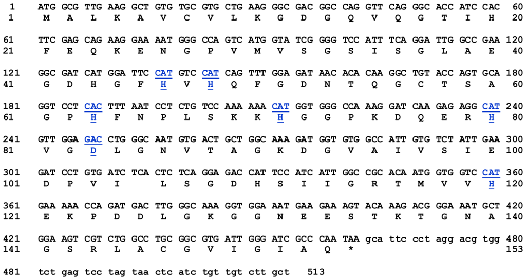 - NCBI (National Center for Biotechnology Information). Available online: http://blast.ncbi.nlm.nih.gov/Blast.cgi?PROGRAM=blastp&BLAST_PROGRAMS=blastp&PAGE_TYPE=BlastSearch&SHOW_DEFAULTS=on&LINK_LOC=blasthome accessed on 28 November 2011.