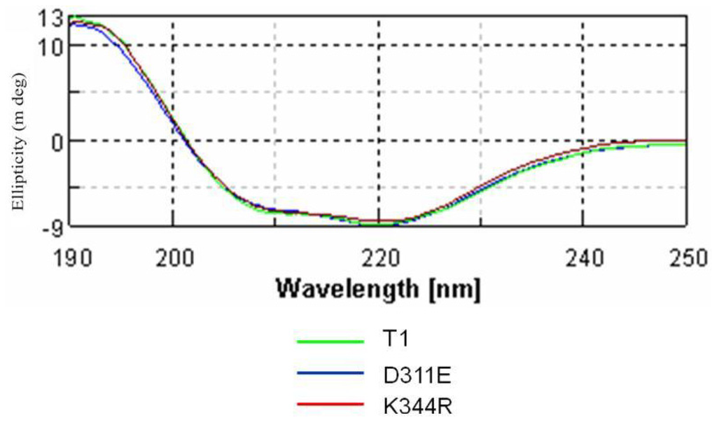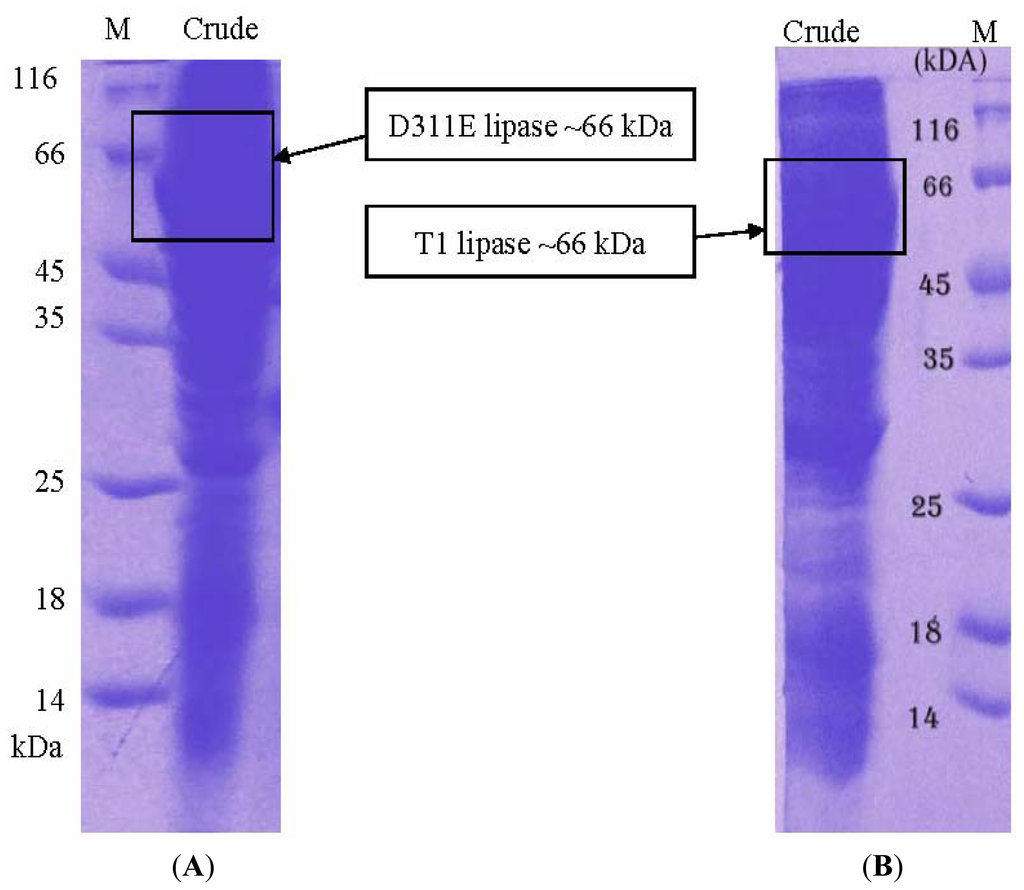 3.3. Protein Expression and Purification of T1 Lipase, D311E Lipase and K344R Lipase