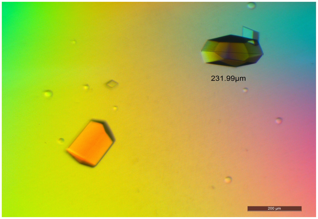 - Matthews, B.W. Solvent content of protein crystals. J. Mol. Biol 1968, 33, 491–497. [Google Scholar]