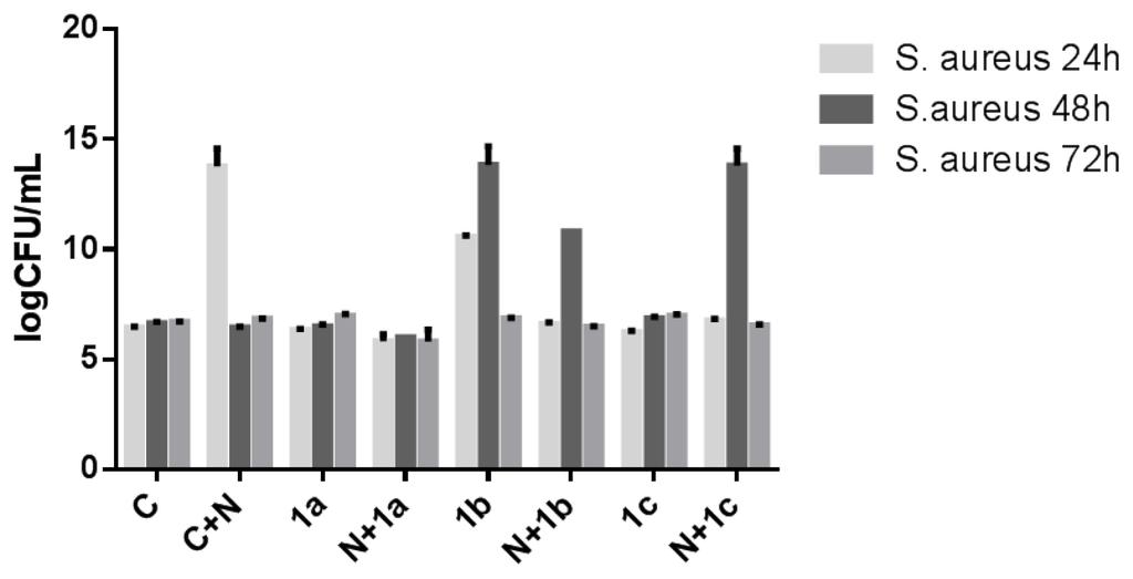 The culture based method demonstrated that the incorporation of the chemical substances 1a–c in the nanosystem, improved the antibiofilm activity of all three compounds.