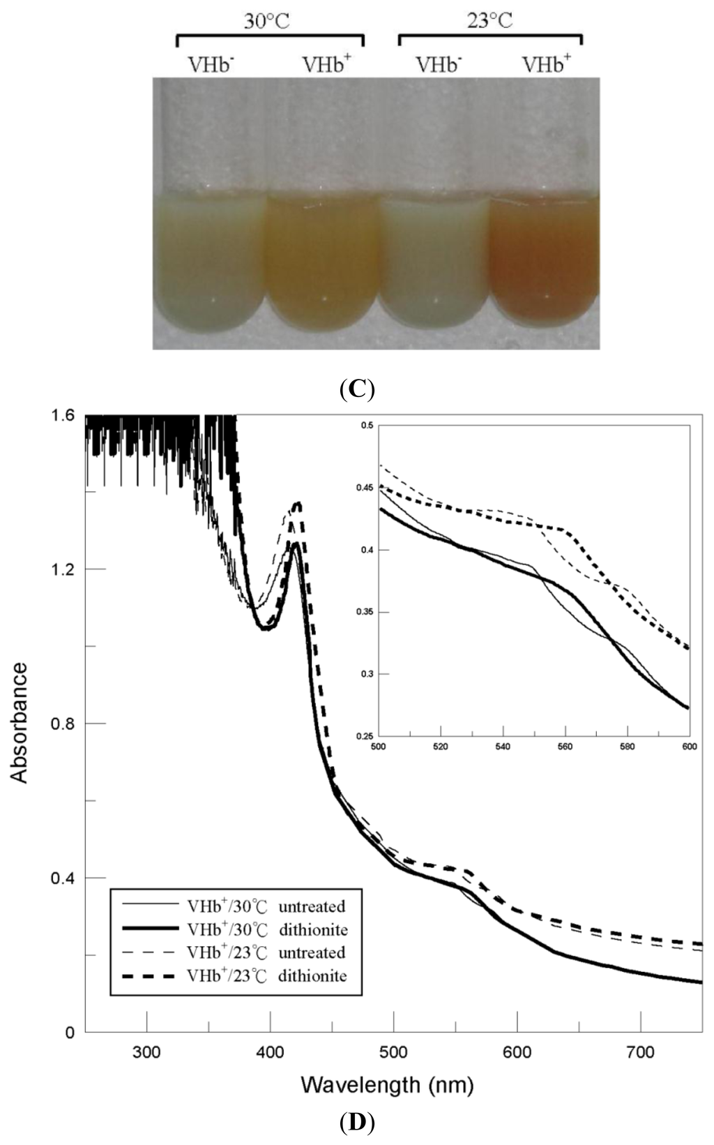 Figure 3B). The finding was in favorable agreement with the fact that the color of total cell lysates of VHb