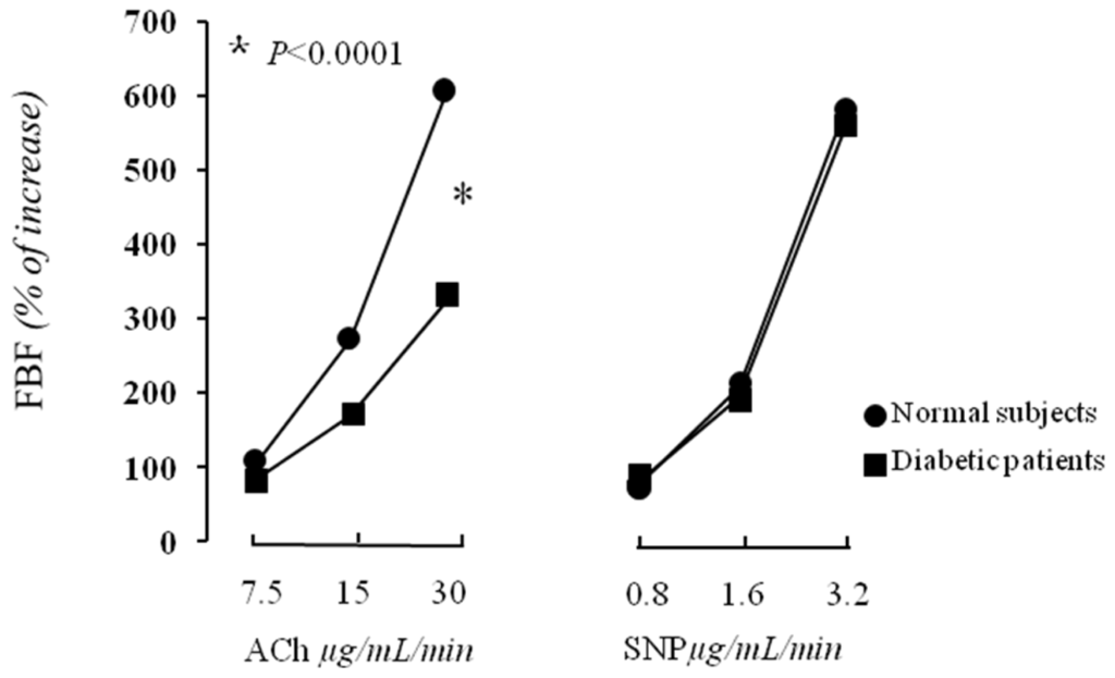 - Williams, S.B.; Cusco, J.A.; Roddy, M.A.; Johnstone, M.T.; Creager, M.A. Impaired nitric oxide-mediated vasodilation in patients with non-insulin-dependent diabetes mellitus. J. Am. Coll. Cardiol 1996, 27, 567–574. [Google Scholar]