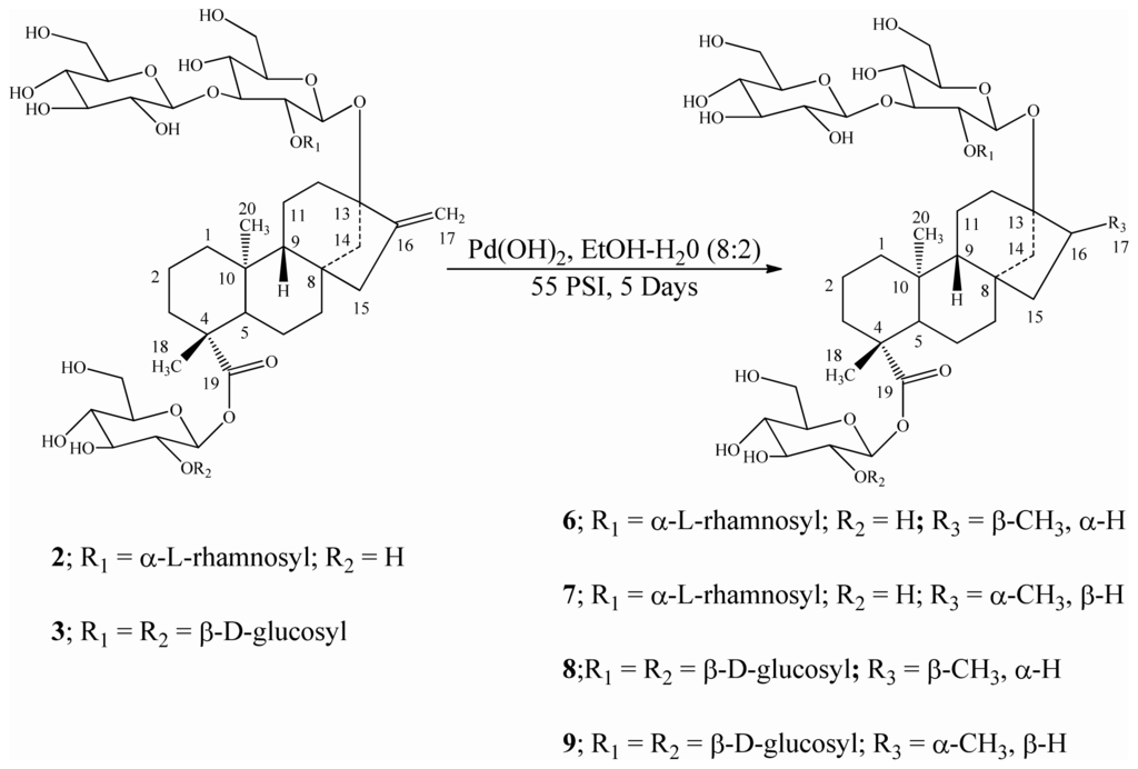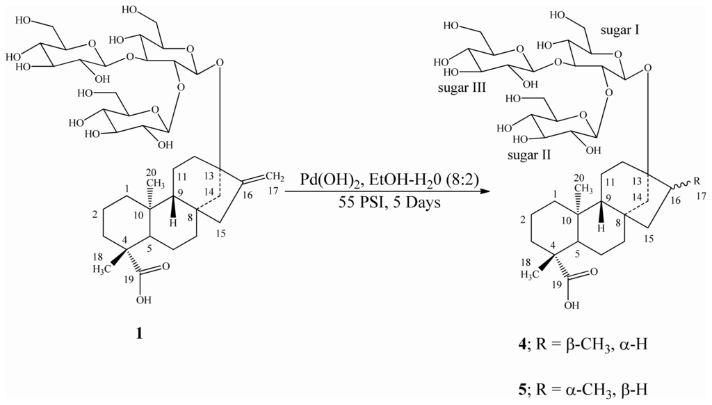 3.2.1. General Procedure for the Catalytic Hydrogenation of Steviol Glycosides 1–3